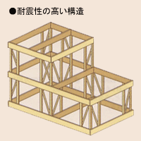 筋交いが入った耐力壁が、壁のコーナー部を始め建物全体にバランスよく配置され、上下の位置もそろっている方が強い。